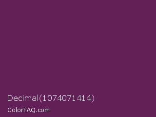 Decimal 1074071414 Color is a dark magenta color and the nearest color is Palatinate Purple #682860. Hex code #632058 and RGB value is rgb(99,32,88). In RGB color space, this color is composed of 39% red, 13% green, 35% blue, In CMYK color space, this color is composed of 0% cyan, 68% magenta, 11% yellow , 61% black , In HSL color space, this color has a hue angle of 310° , 51% saturation and 26% lightness.