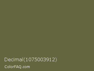 Decimal 1075003912 Color is a normal yellow color and the nearest color is Finch #626649. Hex code #646640 and RGB value is rgb(100,102,64). In RGB color space, this color is composed of 39% red, 40% green, 25% blue, In CMYK color space, this color is composed of 2% cyan, 0% magenta, 37% yellow , 60% black , In HSL color space, this color has a hue angle of 63° , 23% saturation and 33% lightness.