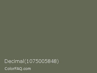 Decimal 1075005848 Color is a normal lime color and the nearest color is Siam #646a54. Hex code #646956 and RGB value is rgb(100,105,86). In RGB color space, this color is composed of 39% red, 41% green, 34% blue, In CMYK color space, this color is composed of 5% cyan, 0% magenta, 18% yellow , 59% black , In HSL color space, this color has a hue angle of 76° , 10% saturation and 37% lightness.