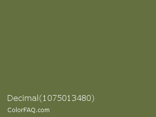 Decimal 1075013480 Color is a normal lime color and the nearest color is Dingley #5d7747. Hex code #647040 and RGB value is rgb(100,112,64). In RGB color space, this color is composed of 39% red, 44% green, 25% blue, In CMYK color space, this color is composed of 11% cyan, 0% magenta, 43% yellow , 56% black , In HSL color space, this color has a hue angle of 75° , 27% saturation and 35% lightness.