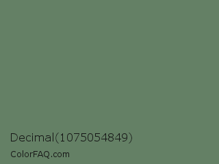 Decimal 1075054849 Color is a normal green color and the nearest color is Glade Green #61845f. Hex code #648065 and RGB value is rgb(100,128,101). In RGB color space, this color is composed of 39% red, 50% green, 40% blue, In CMYK color space, this color is composed of 22% cyan, 0% magenta, 21% yellow , 50% black , In HSL color space, this color has a hue angle of 122° , 12% saturation and 45% lightness.