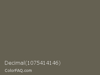 Decimal 1075414146 Color is a normal yellow color and the nearest color is Soya Bean #6a6051. Hex code #656152 and RGB value is rgb(101,97,82). In RGB color space, this color is composed of 40% red, 38% green, 32% blue, In CMYK color space, this color is composed of 0% cyan, 4% magenta, 19% yellow , 60% black , In HSL color space, this color has a hue angle of 47° , 10% saturation and 36% lightness.