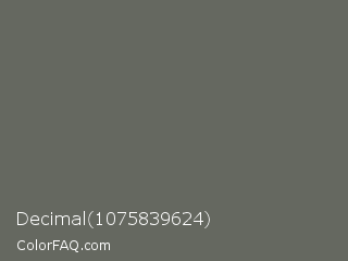 Decimal 1075839624 Color is a normal green color and the nearest color is Ironside Gray #676662. Hex code #656860 and RGB value is rgb(101,104,96). In RGB color space, this color is composed of 40% red, 41% green, 38% blue, In CMYK color space, this color is composed of 3% cyan, 0% magenta, 8% yellow , 59% black , In HSL color space, this color has a hue angle of 83° , 4% saturation and 39% lightness.