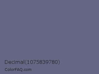 Decimal 1075839780 Color is a normal blue color and the nearest color is Dolphin #646077. Hex code #656884 and RGB value is rgb(101,104,132). In RGB color space, this color is composed of 40% red, 41% green, 52% blue, In CMYK color space, this color is composed of 23% cyan, 21% magenta, 0% yellow , 48% black , In HSL color space, this color has a hue angle of 234° , 13% saturation and 46% lightness.