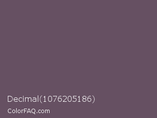 Decimal 1076205186 Color is a normal magenta color and the nearest color is Zambezi #685558. Hex code #665062 and RGB value is rgb(102,80,98). In RGB color space, this color is composed of 40% red, 31% green, 38% blue, In CMYK color space, this color is composed of 0% cyan, 22% magenta, 4% yellow , 60% black , In HSL color space, this color has a hue angle of 311° , 12% saturation and 36% lightness.