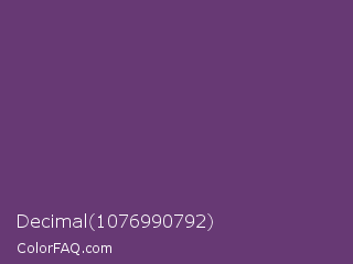 Decimal 1076990792 Color is a normal purple color and the nearest color is Imperial #602f6b. Hex code #673974 and RGB value is rgb(103,57,116). In RGB color space, this color is composed of 40% red, 22% green, 45% blue, In CMYK color space, this color is composed of 11% cyan, 51% magenta, 0% yellow , 55% black , In HSL color space, this color has a hue angle of 287° , 34% saturation and 34% lightness.