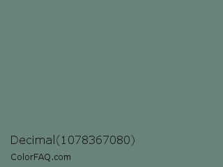Decimal 1078367080 Color is a normal green color and the nearest color is Viridian Green #678975. Hex code #698378 and RGB value is rgb(105,131,120). In RGB color space, this color is composed of 41% red, 51% green, 47% blue, In CMYK color space, this color is composed of 20% cyan, 0% magenta, 8% yellow , 49% black , In HSL color space, this color has a hue angle of 155° , 11% saturation and 46% lightness.