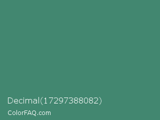 Decimal 17297388082 Color is a normal green color and the nearest color is Viridian #40826d. Hex code #428770 and RGB value is rgb(66,135,112). In RGB color space, this color is composed of 26% red, 53% green, 44% blue, In CMYK color space, this color is composed of 51% cyan, 0% magenta, 17% yellow , 47% black , In HSL color space, this color has a hue angle of 160° , 34% saturation and 39% lightness.