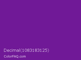 Decimal 1083183125 Color is a normal purple color and the nearest color is Seance #731e8f. Hex code #701997 and RGB value is rgb(112,25,151). In RGB color space, this color is composed of 44% red, 10% green, 59% blue, In CMYK color space, this color is composed of 26% cyan, 83% magenta, 0% yellow , 41% black , In HSL color space, this color has a hue angle of 281° , 72% saturation and 35% lightness.
