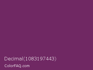 Decimal 1083197443 Color is a dark magenta color and the nearest color is Byzantium #702963. Hex code #702863 and RGB value is rgb(112,40,99). In RGB color space, this color is composed of 44% red, 16% green, 39% blue, In CMYK color space, this color is composed of 0% cyan, 64% magenta, 12% yellow , 56% black , In HSL color space, this color has a hue angle of 311° , 47% saturation and 30% lightness.