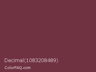 Decimal 1083208489 Color is a normal red color and the nearest color is Catawba #703642. Hex code #703241 and RGB value is rgb(112,50,65). In RGB color space, this color is composed of 44% red, 20% green, 25% blue, In CMYK color space, this color is composed of 0% cyan, 55% magenta, 42% yellow , 56% black , In HSL color space, this color has a hue angle of 345° , 38% saturation and 32% lightness.