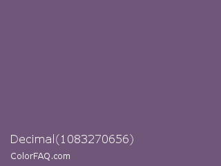 Decimal 1083270656 Color is a normal purple color and the nearest color is Salt Box #685e6e. Hex code #705678 and RGB value is rgb(112,86,120). In RGB color space, this color is composed of 44% red, 34% green, 47% blue, In CMYK color space, this color is composed of 7% cyan, 28% magenta, 0% yellow , 53% black , In HSL color space, this color has a hue angle of 286° , 17% saturation and 40% lightness.
