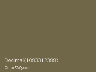 Decimal 1083312388 Color is a normal yellow color and the nearest color is Go Ben #726d4e. Hex code #706748 and RGB value is rgb(112,103,72). In RGB color space, this color is composed of 44% red, 40% green, 28% blue, In CMYK color space, this color is composed of 0% cyan, 8% magenta, 36% yellow , 56% black , In HSL color space, this color has a hue angle of 47° , 22% saturation and 36% lightness.