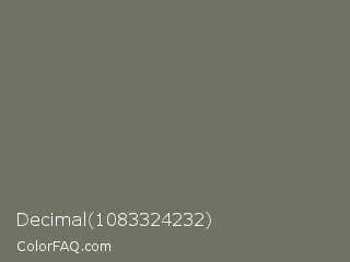 Decimal 1083324232 Color is a normal yellow color and the nearest color is Pablo #776f61. Hex code #707264 and RGB value is rgb(112,114,100). In RGB color space, this color is composed of 44% red, 45% green, 39% blue, In CMYK color space, this color is composed of 2% cyan, 0% magenta, 12% yellow , 55% black , In HSL color space, this color has a hue angle of 69° , 7% saturation and 42% lightness.