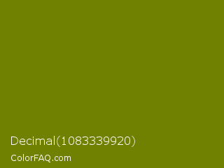 Decimal 1083339920 Color is a dark yellow color and the nearest color is Olive #808000. Hex code #708102 and RGB value is rgb(112,129,2). In RGB color space, this color is composed of 44% red, 51% green, 1% blue, In CMYK color space, this color is composed of 13% cyan, 0% magenta, 98% yellow , 49% black , In HSL color space, this color has a hue angle of 68° , 97% saturation and 26% lightness.