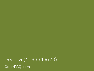 Decimal 1083343623 Color is a normal lime color and the nearest color is Crete #737829. Hex code #708433 and RGB value is rgb(112,132,51). In RGB color space, this color is composed of 44% red, 52% green, 20% blue, In CMYK color space, this color is composed of 15% cyan, 0% magenta, 61% yellow , 48% black , In HSL color space, this color has a hue angle of 75° , 44% saturation and 36% lightness.