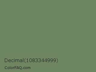 Decimal 1083344999 Color is a normal green color and the nearest color is Highland #6f8e63. Hex code #708663 and RGB value is rgb(112,134,99). In RGB color space, this color is composed of 44% red, 53% green, 39% blue, In CMYK color space, this color is composed of 16% cyan, 0% magenta, 26% yellow , 47% black , In HSL color space, this color has a hue angle of 98° , 15% saturation and 46% lightness.