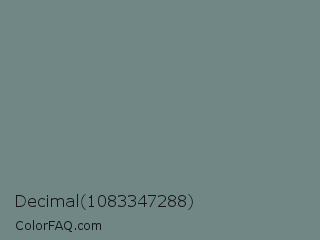 Decimal 1083347288 Color is a normal cyan color and the nearest color is Blue Smoke #748881. Hex code #708786 and RGB value is rgb(112,135,134). In RGB color space, this color is composed of 44% red, 53% green, 53% blue, In CMYK color space, this color is composed of 17% cyan, 0% magenta, 1% yellow , 47% black , In HSL color space, this color has a hue angle of 177° , 9% saturation and 48% lightness.