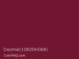 Decimal 1083594368 Color is a dark rose color and the nearest color is Claret #7f1734. Hex code #711630 and RGB value is rgb(113,22,48). In RGB color space, this color is composed of 44% red, 9% green, 19% blue, In CMYK color space, this color is composed of 0% cyan, 81% magenta, 58% yellow , 56% black , In HSL color space, this color has a hue angle of 343° , 67% saturation and 26% lightness.