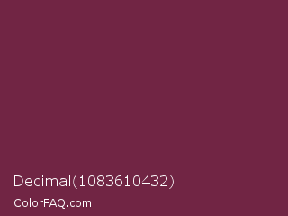 Decimal 1083610432 Color is a dark rose color and the nearest color is Tawny Port #692545. Hex code #712544 and RGB value is rgb(113,37,68). In RGB color space, this color is composed of 44% red, 15% green, 27% blue, In CMYK color space, this color is composed of 0% cyan, 67% magenta, 40% yellow , 56% black , In HSL color space, this color has a hue angle of 336° , 51% saturation and 29% lightness.