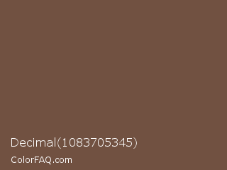 Decimal 1083705345 Color is a normal orange color and the nearest color is Tuscan Brown Coffee #6f4e37. Hex code #715141 and RGB value is rgb(113,81,65). In RGB color space, this color is composed of 44% red, 32% green, 25% blue, In CMYK color space, this color is composed of 0% cyan, 28% magenta, 42% yellow , 56% black , In HSL color space, this color has a hue angle of 20° , 27% saturation and 35% lightness.