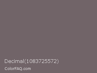 Decimal 1083725572 Color is a normal rose color and the nearest color is Flint #6f6a61. Hex code #716468 and RGB value is rgb(113,100,104). In RGB color space, this color is composed of 44% red, 39% green, 41% blue, In CMYK color space, this color is composed of 0% cyan, 12% magenta, 8% yellow , 56% black , In HSL color space, this color has a hue angle of 342° , 6% saturation and 42% lightness.