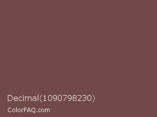 Decimal 1090798230 Color is a normal red color and the nearest color is Tuscan Red #7c4848. Hex code #724948 and RGB value is rgb(114,73,72). In RGB color space, this color is composed of 45% red, 29% green, 28% blue, In CMYK color space, this color is composed of 0% cyan, 36% magenta, 37% yellow , 55% black , In HSL color space, this color has a hue angle of 1° , 23% saturation and 36% lightness.