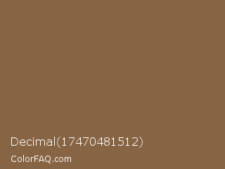 Decimal 17470481512 Color is a normal orange color and the nearest color is Raw Umber #826644. Hex code #876544 and RGB value is rgb(135,101,68). In RGB color space, this color is composed of 53% red, 40% green, 27% blue, In CMYK color space, this color is composed of 0% cyan, 25% magenta, 50% yellow , 47% black , In HSL color space, this color has a hue angle of 30° , 33% saturation and 40% lightness.