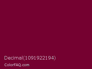 Decimal 1091922194 Color is a dark rose color and the nearest color is Siren #7a013a. Hex code #740130 and RGB value is rgb(116,1,48). In RGB color space, this color is composed of 45% red, 0% green, 19% blue, In CMYK color space, this color is composed of 0% cyan, 99% magenta, 59% yellow , 55% black , In HSL color space, this color has a hue angle of 335° , 98% saturation and 23% lightness.