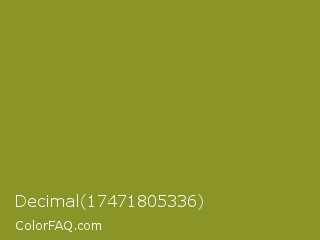 Decimal 17471805336 Color is a normal yellow color and the nearest color is Wasabi #788a25. Hex code #899526 and RGB value is rgb(137,149,38). In RGB color space, this color is composed of 54% red, 58% green, 15% blue, In CMYK color space, this color is composed of 8% cyan, 0% magenta, 74% yellow , 42% black , In HSL color space, this color has a hue angle of 66° , 59% saturation and 37% lightness.