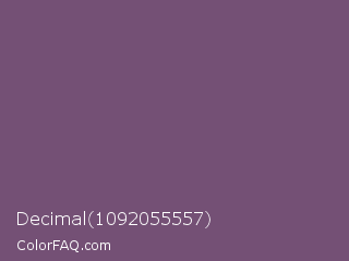 Decimal 1092055557 Color is a normal magenta color and the nearest color is Salt Box #685e6e. Hex code #745075 and RGB value is rgb(116,80,117). In RGB color space, this color is composed of 45% red, 31% green, 46% blue, In CMYK color space, this color is composed of 1% cyan, 32% magenta, 0% yellow , 54% black , In HSL color space, this color has a hue angle of 298° , 19% saturation and 39% lightness.