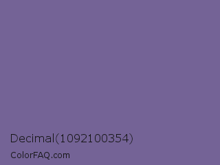 Decimal 1092100354 Color is a normal indigo color and the nearest color is Kimberly #736c9f. Hex code #746396 and RGB value is rgb(116,99,150). In RGB color space, this color is composed of 45% red, 39% green, 59% blue, In CMYK color space, this color is composed of 23% cyan, 34% magenta, 0% yellow , 41% black , In HSL color space, this color has a hue angle of 260° , 20% saturation and 49% lightness.