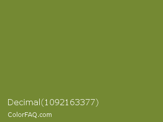 Decimal 1092163377 Color is a normal lime color and the nearest color is Wasabi #788a25. Hex code #748933 and RGB value is rgb(116,137,51). In RGB color space, this color is composed of 45% red, 54% green, 20% blue, In CMYK color space, this color is composed of 15% cyan, 0% magenta, 63% yellow , 46% black , In HSL color space, this color has a hue angle of 75° , 46% saturation and 37% lightness.