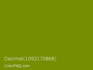 Decimal 1092170868 Color is a dark lime color and the nearest color is Limeade #6f9d02. Hex code #749002 and RGB value is rgb(116,144,2). In RGB color space, this color is composed of 45% red, 56% green, 1% blue, In CMYK color space, this color is composed of 19% cyan, 0% magenta, 99% yellow , 44% black , In HSL color space, this color has a hue angle of 72° , 97% saturation and 29% lightness.