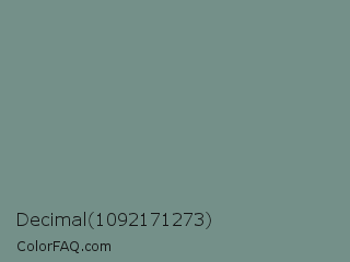 Decimal 1092171273 Color is a normal cyan color and the nearest color is Blue Smoke #748881. Hex code #749089 and RGB value is rgb(116,144,137). In RGB color space, this color is composed of 45% red, 56% green, 54% blue, In CMYK color space, this color is composed of 19% cyan, 0% magenta, 5% yellow , 44% black , In HSL color space, this color has a hue angle of 165° , 11% saturation and 51% lightness.