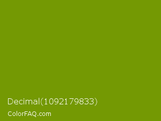 Decimal 1092179833 Color is a normal lime color and the nearest color is Limeade #6f9d02. Hex code #749903 and RGB value is rgb(116,153,3). In RGB color space, this color is composed of 45% red, 60% green, 1% blue, In CMYK color space, this color is composed of 24% cyan, 0% magenta, 98% yellow , 40% black , In HSL color space, this color has a hue angle of 75° , 96% saturation and 31% lightness.