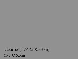 Decimal 17483068978 Color is a normal green color and the nearest color is Mountain Mist #959396. Hex code #909190 and RGB value is rgb(144,145,144). In RGB color space, this color is composed of 56% red, 57% green, 56% blue, In CMYK color space, this color is composed of 1% cyan, 0% magenta, 1% yellow , 43% black , In HSL color space, this color has a hue angle of 120° , 0% saturation and 57% lightness.