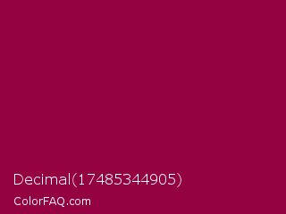 Decimal 17485344905 Color is a dark rose color and the nearest color is Pink Raspberry #980036. Hex code #940241 and RGB value is rgb(148,2,65). In RGB color space, this color is composed of 58% red, 1% green, 25% blue, In CMYK color space, this color is composed of 0% cyan, 99% magenta, 56% yellow , 42% black , In HSL color space, this color has a hue angle of 334° , 97% saturation and 29% lightness.