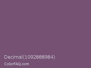 Decimal 1092888984 Color is a normal magenta color and the nearest color is Salt Box #685e6e. Hex code #755176 and RGB value is rgb(117,81,118). In RGB color space, this color is composed of 46% red, 32% green, 46% blue, In CMYK color space, this color is composed of 1% cyan, 31% magenta, 0% yellow , 54% black , In HSL color space, this color has a hue angle of 298° , 19% saturation and 39% lightness.