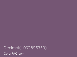 Decimal 1092895350 Color is a normal magenta color and the nearest color is Salt Box #685e6e. Hex code #755674 and RGB value is rgb(117,86,116). In RGB color space, this color is composed of 46% red, 34% green, 45% blue, In CMYK color space, this color is composed of 0% cyan, 26% magenta, 1% yellow , 54% black , In HSL color space, this color has a hue angle of 302° , 15% saturation and 40% lightness.