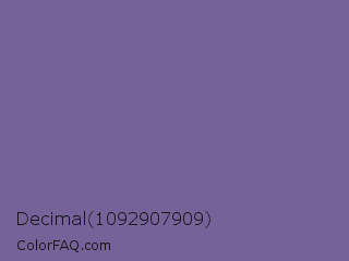 Decimal 1092907909 Color is a normal violet color and the nearest color is Kimberly #736c9f. Hex code #756299 and RGB value is rgb(117,98,153). In RGB color space, this color is composed of 46% red, 38% green, 60% blue, In CMYK color space, this color is composed of 24% cyan, 36% magenta, 0% yellow , 40% black , In HSL color space, this color has a hue angle of 261° , 22% saturation and 49% lightness.