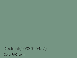 Decimal 1093010457 Color is a normal green color and the nearest color is Oxley #779e86. Hex code #759583 and RGB value is rgb(117,149,131). In RGB color space, this color is composed of 46% red, 58% green, 51% blue, In CMYK color space, this color is composed of 21% cyan, 0% magenta, 12% yellow , 42% black , In HSL color space, this color has a hue angle of 146° , 13% saturation and 52% lightness.