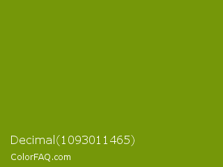 Decimal 1093011465 Color is a normal lime color and the nearest color is Limeade #6f9d02. Hex code #759709 and RGB value is rgb(117,151,9). In RGB color space, this color is composed of 46% red, 59% green, 4% blue, In CMYK color space, this color is composed of 23% cyan, 0% magenta, 94% yellow , 41% black , In HSL color space, this color has a hue angle of 74° , 89% saturation and 31% lightness.