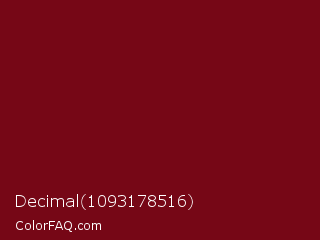 Decimal 1093178516 Color is a dark red color and the nearest color is Venetian Red #72010f. Hex code #760716 and RGB value is rgb(118,7,22). In RGB color space, this color is composed of 46% red, 3% green, 9% blue, In CMYK color space, this color is composed of 0% cyan, 94% magenta, 81% yellow , 54% black , In HSL color space, this color has a hue angle of 352° , 89% saturation and 25% lightness.
