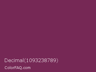 Decimal 1093238789 Color is a normal magenta color and the nearest color is Finn #692d54. Hex code #762855 and RGB value is rgb(118,40,85). In RGB color space, this color is composed of 46% red, 16% green, 33% blue, In CMYK color space, this color is composed of 0% cyan, 66% magenta, 28% yellow , 54% black , In HSL color space, this color has a hue angle of 325° , 49% saturation and 31% lightness.