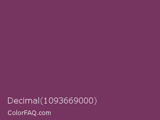 Decimal 1093669000 Color is a normal magenta color and the nearest color is Cosmic #76395d. Hex code #763460 and RGB value is rgb(118,52,96). In RGB color space, this color is composed of 46% red, 20% green, 38% blue, In CMYK color space, this color is composed of 0% cyan, 56% magenta, 19% yellow , 54% black , In HSL color space, this color has a hue angle of 320° , 39% saturation and 33% lightness.