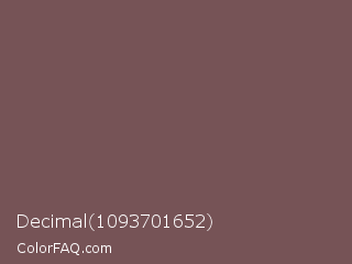 Decimal 1093701652 Color is a normal red color and the nearest color is Russett #755a57. Hex code #765356 and RGB value is rgb(118,83,86). In RGB color space, this color is composed of 46% red, 33% green, 34% blue, In CMYK color space, this color is composed of 0% cyan, 30% magenta, 27% yellow , 54% black , In HSL color space, this color has a hue angle of 355° , 17% saturation and 39% lightness.