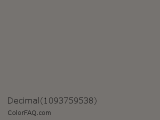 Decimal 1093759538 Color is a normal orange color and the nearest color is Nickel #727472. Hex code #767370 and RGB value is rgb(118,115,112). In RGB color space, this color is composed of 46% red, 45% green, 44% blue, In CMYK color space, this color is composed of 0% cyan, 3% magenta, 5% yellow , 54% black , In HSL color space, this color has a hue angle of 30° , 3% saturation and 45% lightness.