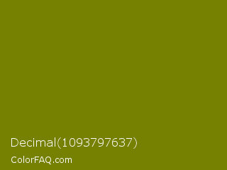 Decimal 1093797637 Color is a dark yellow color and the nearest color is Olive #808000. Hex code #768101 and RGB value is rgb(118,129,1). In RGB color space, this color is composed of 46% red, 51% green, 0% blue, In CMYK color space, this color is composed of 9% cyan, 0% magenta, 99% yellow , 49% black , In HSL color space, this color has a hue angle of 65° , 98% saturation and 25% lightness.