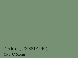Decimal 1093814549 Color is a normal green color and the nearest color is Laurel #749378. Hex code #769173 and RGB value is rgb(118,145,115). In RGB color space, this color is composed of 46% red, 57% green, 45% blue, In CMYK color space, this color is composed of 19% cyan, 0% magenta, 21% yellow , 43% black , In HSL color space, this color has a hue angle of 114° , 12% saturation and 51% lightness.